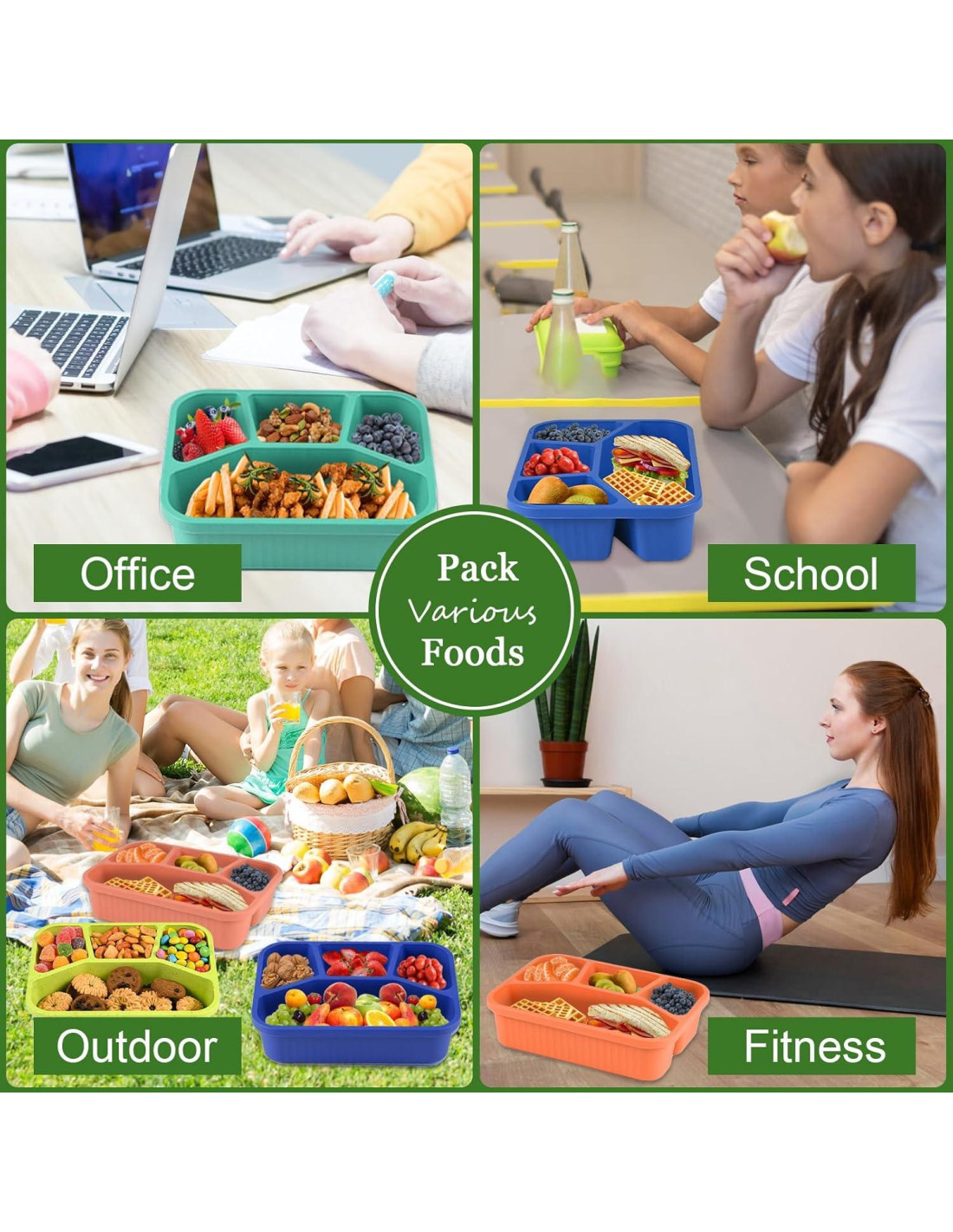 - Tapa Fácil de Abrir: El conjunto de contenedores de almuerzo con compartimentos viene con 4 cajas de snack de diferentes colores y tapas, que se ajustan de manera segura en la parte superior y tienen un mango de 'oreja de gato' para una fácil apertura (Nota: no son a prueba de fugas)