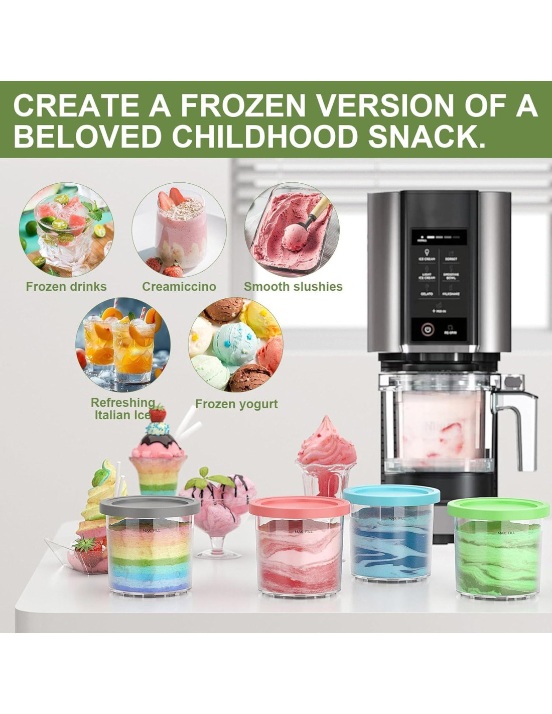 - CREA MÁS DELICIAS CONGELADAS: Estos recipientes de helado están diseñados específicamente para las máquinas de helados de las series NC301, NC299AMZ y NC300. Utiliza 4 pints adicionales para mantener una variedad de delicias congeladas CREAMi, incluyendo helado, gelato y sorbete, listas para disfrutar