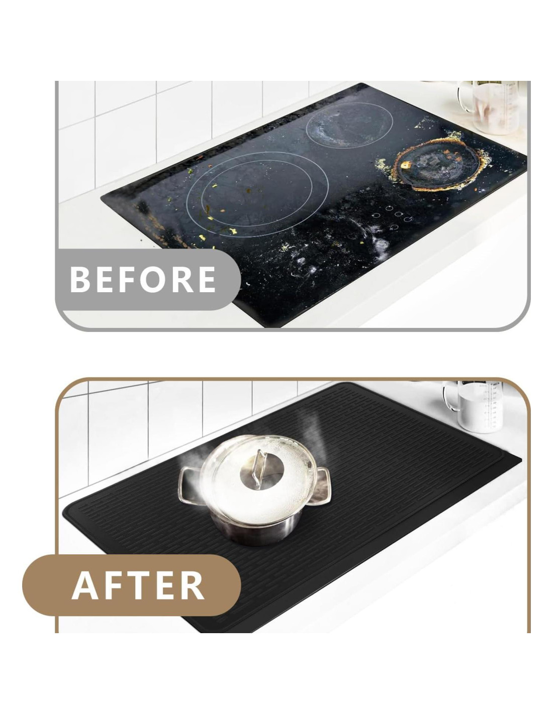 - Protección Definitiva: Este tapete de secado de platos de silicona extra grande y cubierta para estufa protege superficies como estufas de vidrio, encimeras de cocina, cocinas eléctricas, cubiertas para espacios entre estufas y la parte superior de lavadoras-secadoras de arañazos, derrames, manchas, rasguños y suciedad. Las cubiertas para estufas eléctricas son imprescindibles para apartamentos y esenciales para cualquier cocina moderna.