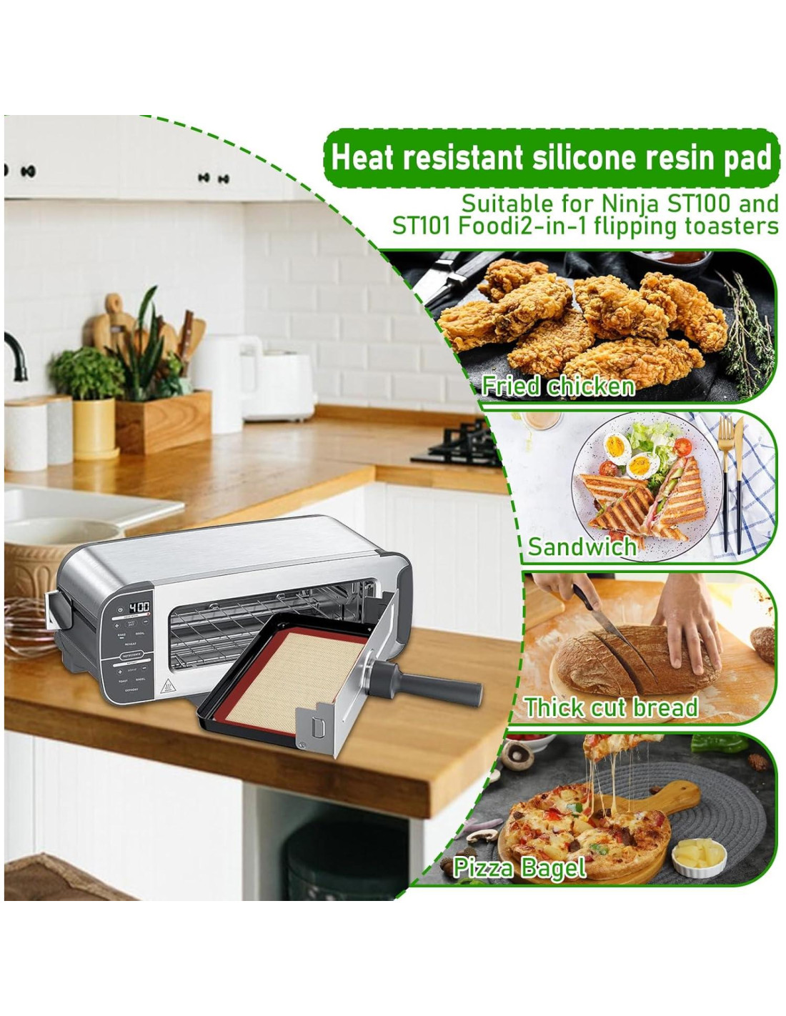 - Tamaño adecuado: Estos forros de silicona de fibra de vidrio miden aproximadamente 24.3 x 14.2 cm, estos tapetes para hornear son perfectos tanto para el tolerante ST100/ST101 Foodi, y también son adecuados para bandejas de horno pequeñas, delicadas y compactas, fáciles de almacenar, se pueden guardar fácilmente en las encimeras de la cocina y en los cajones cuando no están en uso.