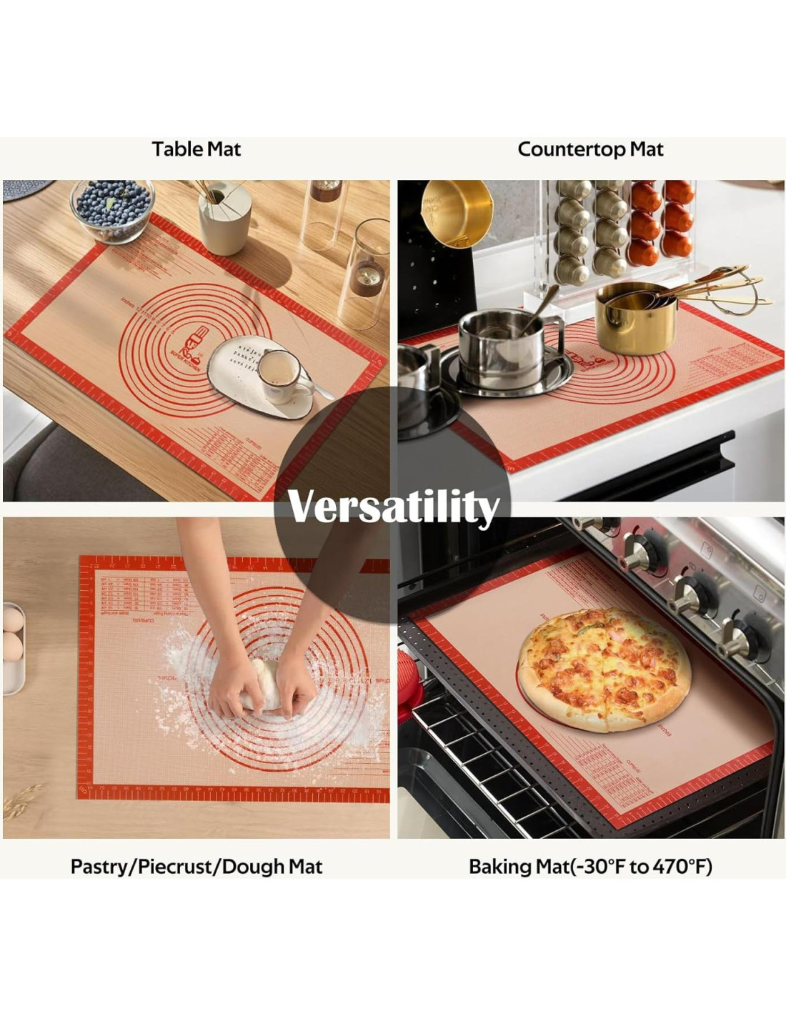 - Lado antideslizante y multifuncional: Hemos mejorado el diseño antideslizante en la parte posterior. Se mantendrá bien en la mesa al amasar la masa. Es buena para alfombrilla de repostería (40.6cm x 66cm), alfombrilla de mesa, alfombrilla de hornear (temperaturas de -34.4C a 243.3C), almohadilla para pizza y alfombrilla de encimera.