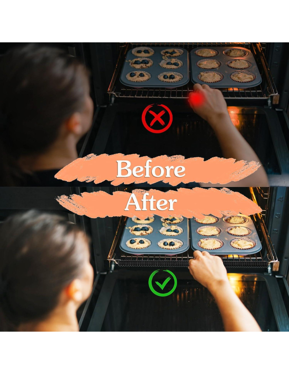 - Esencial para la Seguridad en la Cocina: Mejora la seguridad en la cocina y previene quemaduras o lesiones dolorosas mientras cocinas o horneas. Estos protectores se deslizan fácilmente sobre los estantes del horno, creando una capa protectora que reduce el riesgo de contacto accidental con metal caliente.