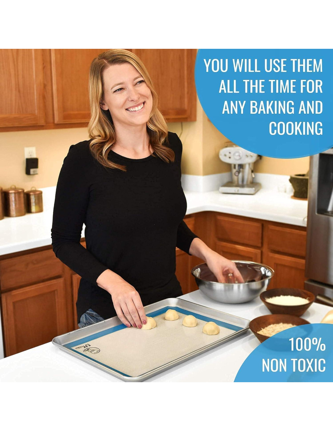 - ¡SIN RIESGO! ¿Esto viene con garantía? ¡SÍ! Tu compra de nuestros tapetes de hornear de silicona antiadherentes y libres de BPA viene con una garantía extendida de 3 años sin preguntas. Si el producto no es para ti, te reembolsaremos tu compra. Si necesitas un reemplazo, ¡ya está en camino! ¡Ve por qué los clientes de Amazon califican nuestro tapete de silicona para bandejas para hornear y tapete de silicona para estirar masa con 5 estrellas!