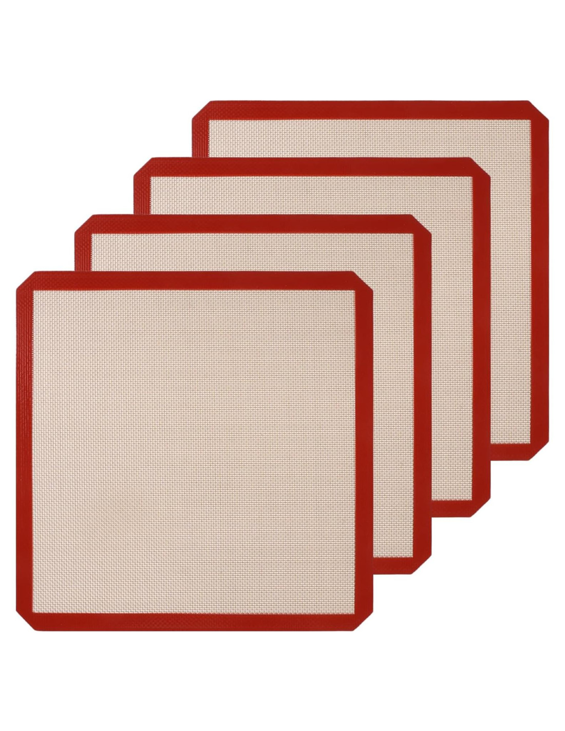 - Material de alta calidad: Estos tapetes para hornear de silicona están hechos de silicona 100% importada de grado alimenticio, superficie antiadherente, incolora e inodora, reutilizable y resistente a altas temperaturas, la combinación de silicona y material de fibra de vidrio está diseñada para garantizar un rendimiento y fiabilidad duraderos, los tapetes de hornear de fibra de vidrio de silicona son fáciles de limpiar y aptos para lavavajillas.