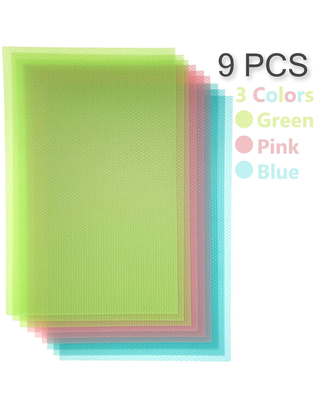 - Tamaño de los Tapetes para Refrigerador: Conjunto personalizable de 9 piezas que cubre estantes de todos los tamaños con 9 forros duraderos (45 x 29 cm cada uno). En 3 colores: rojo, verde y azul. Recorta los bordes libremente para un ajuste perfecto en cualquier refrigerador.
