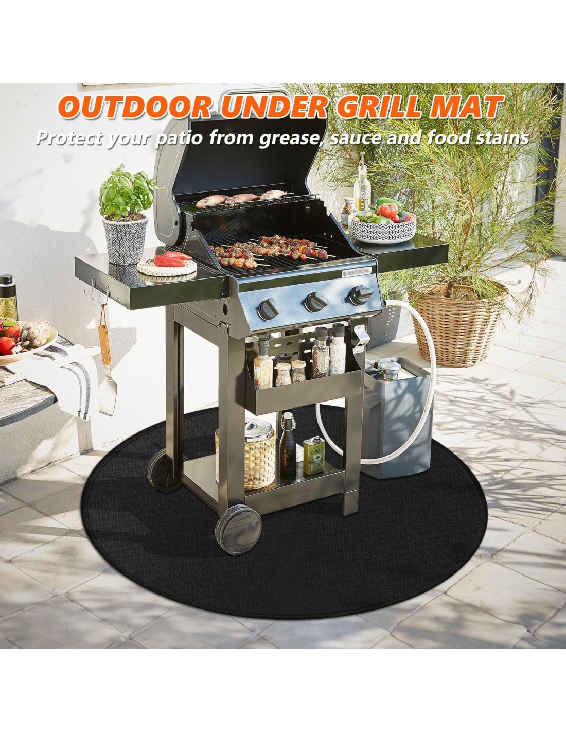 - Protege tu Deck y Patio: Alfombrilla redonda a prueba de fuego y resistente al aceite de 48 pulgadas puede proteger tu deck, patio, césped de brasas, aceite caliente, salsas y manchas de comida, prevenir riesgos de incendio, reducir la carga de limpieza, perfecta para fogatas, parrillas, chimeneas, etc.