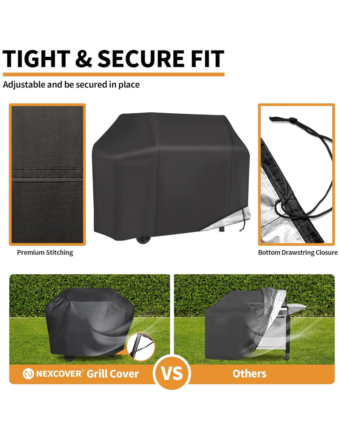 - Cordon Ajustable: Esta cubierta para parrilla de gas está equipada con un cordón ajustable. Esta característica te permite adaptar la cubierta a tu parrilla y proteger eficazmente tu cubierta de ser llevada por el viento, proporcionando un ajuste seguro y personalizado. Simplemente utiliza el cordón ajustable para envolver tu parrilla, asegurando una barrera ajustada y protectora contra los elementos.