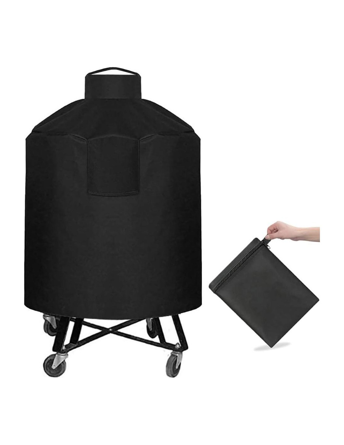 Cubierta para Parrilla Kamado para XL Big Green Egg Accesorios Cubierta Kamado Big Joe Resistente XL Cubierta para Parrilla Cerámica Huevo Grande XL 1. Características del Producto: Color: Negro Material Exterior: Poliéster 600D Material Interior: Recubrimiento de PVC Tamaño: 90.2 cm Diámetro x 121.9 cm Altura Tipo de producto: Cubierta para XL Big Green Egg / Cubierta Kamado Joe Big Joe / Cubierta para Parrilla Cerámica XL 2. Descripción del Producto: ?Resistente Material Oxford de alta resistencia con recubrimiento de PVC impermeable y protección UV para ayudar a proteger su parrilla de los elementos. ?Asa Superior Asa duradera para facilitar el ajuste y movimiento. También se puede usar para colgar y almacenar. ?Ventilación Cubierta kamado big joe tiene ventilación que evitará la acumulación de humedad y condensación, lo que no llevará a que la parrilla kamado big joe se oxide. También acelera la disipación del calor. ?Cuerda Ajustable Correas de hebilla duraderas y fuertes y cuerda elástica en la parte inferior de la cubierta del ahumador cerámico. Mantiene la cubierta cerca de la parrilla kamado joe, haciendo que la cubierta del huevo grande xl se ajuste para prevenir el viento. ?Adecuado Para Se adapta a la mayoría de las parrillas kamado de 61-66 cm / parrillas cerámicas, se adapta al huevo grande xl, kamado joe big joe, parrillas vision de 61 cm, parrillas louisiana k24, pit boss k24, ahumador grill dome xl, ahumador cerámico primo, kamado char-griller akorn, outlast kamado, etc.