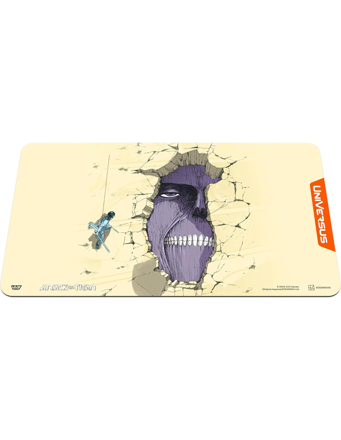 UNIVERSUS ATAQUE DE LOS TITANES: BATALLA POR LA HUMANIDAD - TAPETE DE TITANES DE LA MURALLA - Mantén tus cartas seguras y muéstralas con estilo con este nuevo tapete que presenta al Titán de la Muralla. El tapete está hecho de neopreno de alta calidad y cuenta con un respaldo de goma para ayudar a mantener el tapete en su lugar mientras juegas. Desplegado, el tapete mide 24 pulgadas (60.96 cm) x 14 pulgadas (35.56 cm). La impresionante obra de arte ayudará a llevar tu juego al siguiente nivel y ofrecerá una experiencia más inmersiva. Accesorio para ser utilizado con el juego de cartas UniVersus Ataque de los Titanes. Incluye: (1) tapete de neopreno de 24 x 14 pulgadas (60.96 x 35.56 cm). Licenciado oficialmente: Ataque de los Titanes: Batalla por la Humanidad Universus CCG - trayendo la obra maestra del manga de Hajime Isayama a la vida.