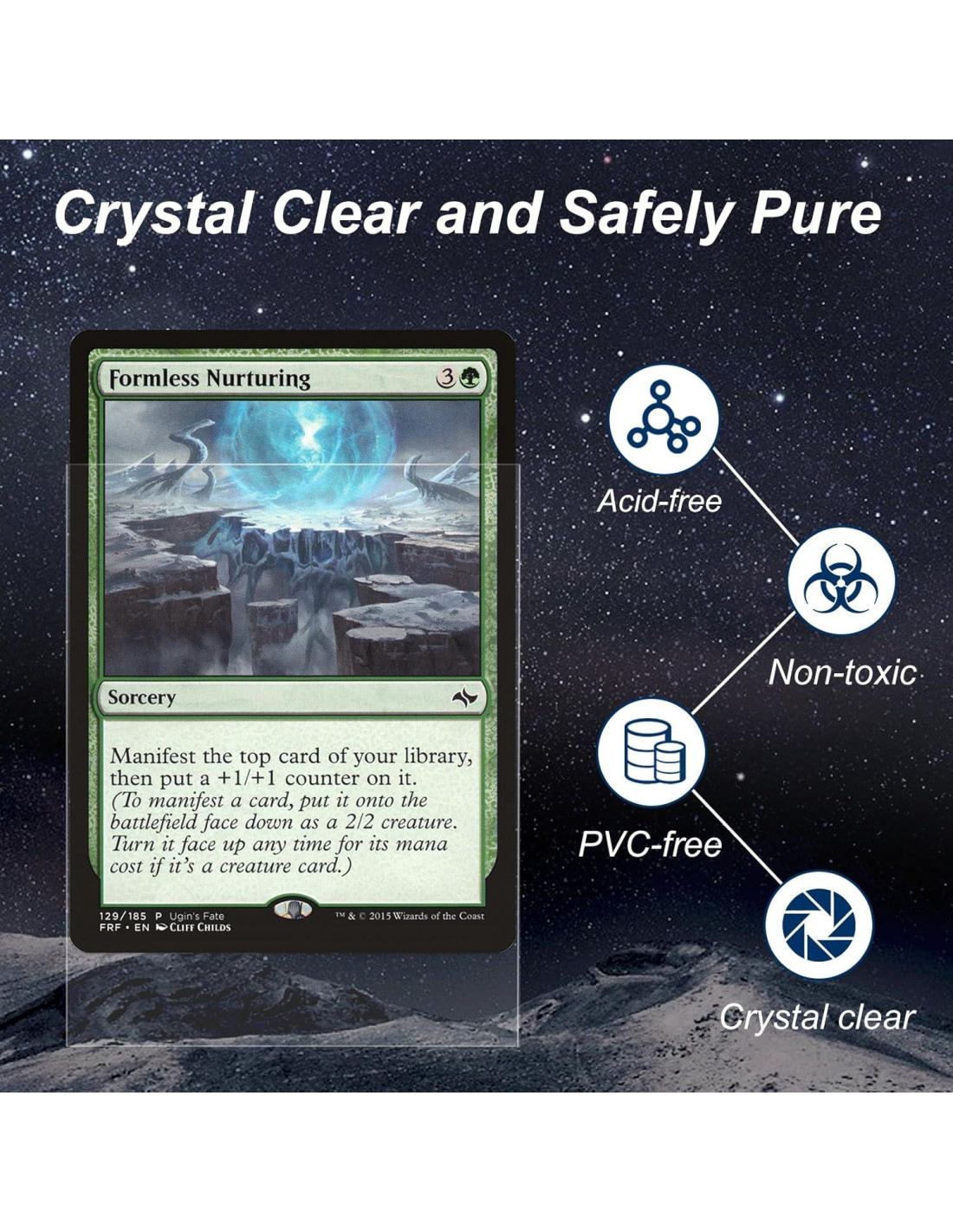 - Doble Funda Sin Costuras Las fundas para cartas de ajuste perfecto están diseñadas meticulosamente para complementar sin problemas las fundas mate para cartas o los álbumes de cartas. Simplemente presiona suavemente las fundas interiores con tu pulgar y deslízalas suavemente en las fundas exteriores para disfrutar sin esfuerzo de la perfecta protección de doble capa.