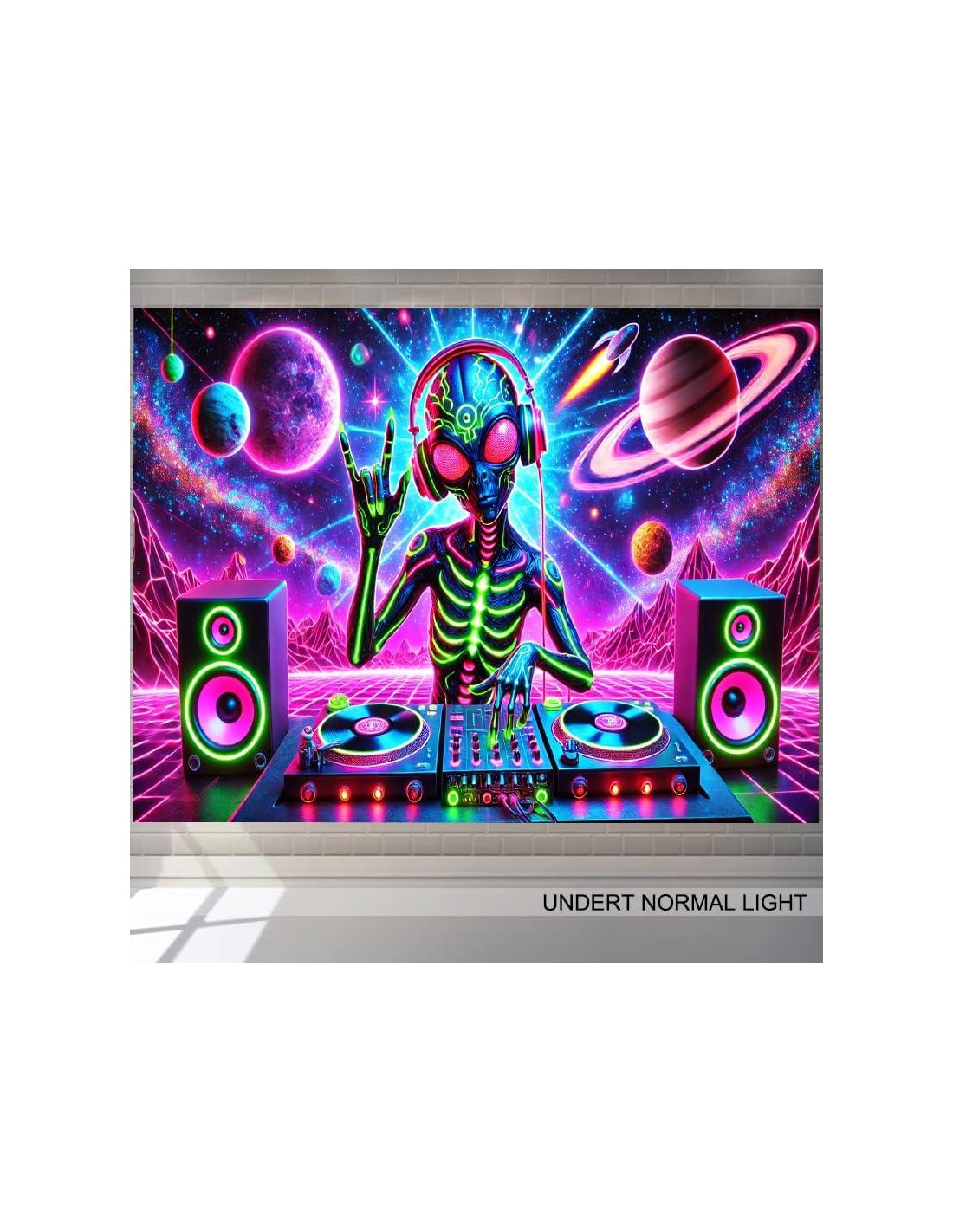 - Efecto fluorescente que brilla en la oscuridad: Este tapiz de aliens da vida a tu espacio con una impresionante característica que brilla en la oscuridad. Los colores vibrantes iluminan tu habitación, especialmente en entornos con poca luz, convirtiéndolo en la pieza decorativa perfecta para tu sala de estar, dormitorio o lugar de fiesta.