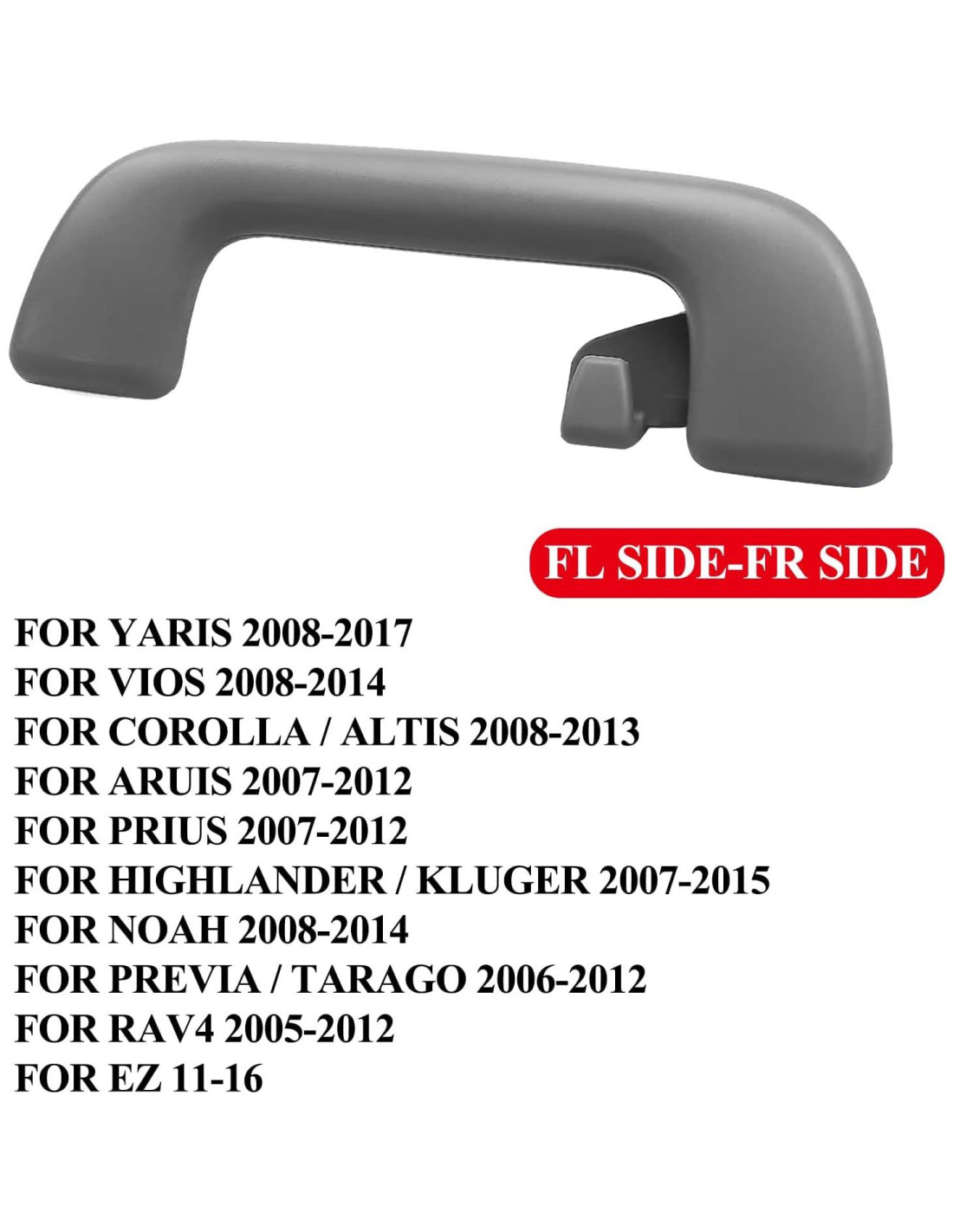 - [Modelos Aplicables] Este Mango de Techo Interior Compatible para Toyota Yaris 2008-2017, Vios 2008-2014, Corolla / Altis 2008-2013, Aruis 2007-2012, Prius 2007-2012, Highlander / Kluger 2007-2015, Noah 2008-2014, Previa / Tarago 2006-2012, Rav4 2005-2012, EZ 11-16