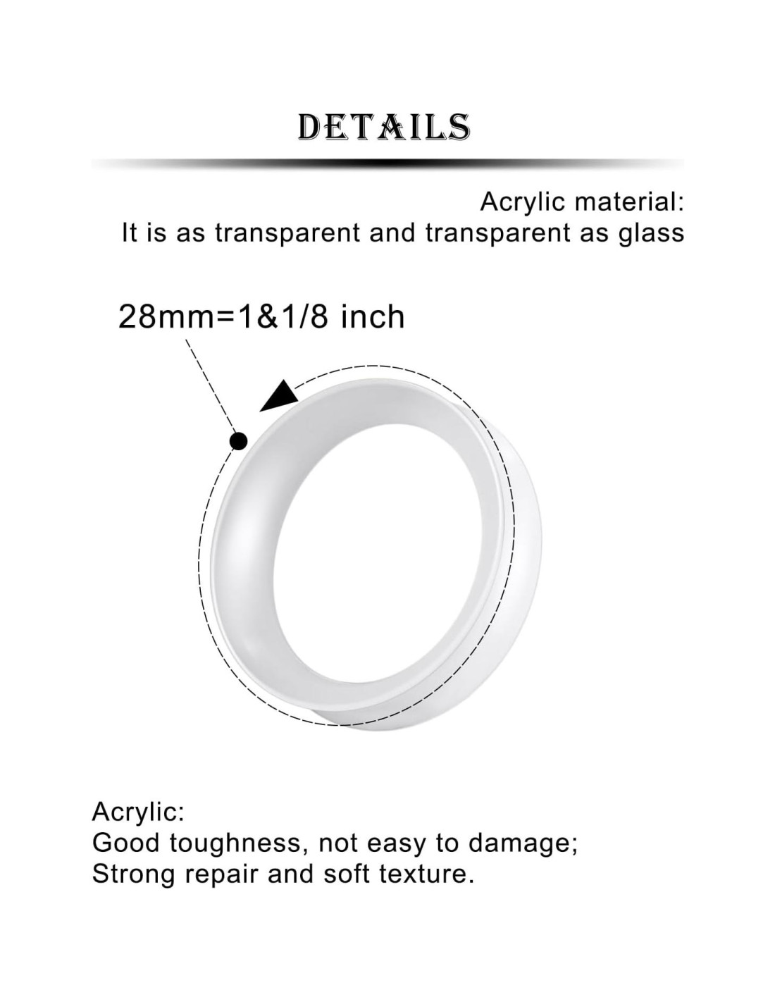 - Tamaño de Túneles de Silicona: 28mm = 1 1/8 pulgadas (28mm)