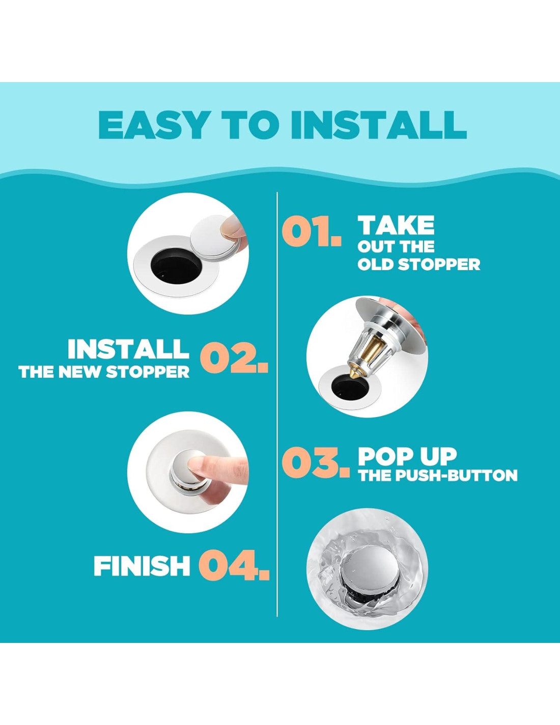 - Material premium y duradero: Nuestro tapón de lavabo de baño está hecho de acero inoxidable y material de latón de calidad gruesa y anti-rajaduras, con durabilidad, estructura fuerte, se puede usar durante mucho tiempo sin agrietarse ni tener fugas de agua.