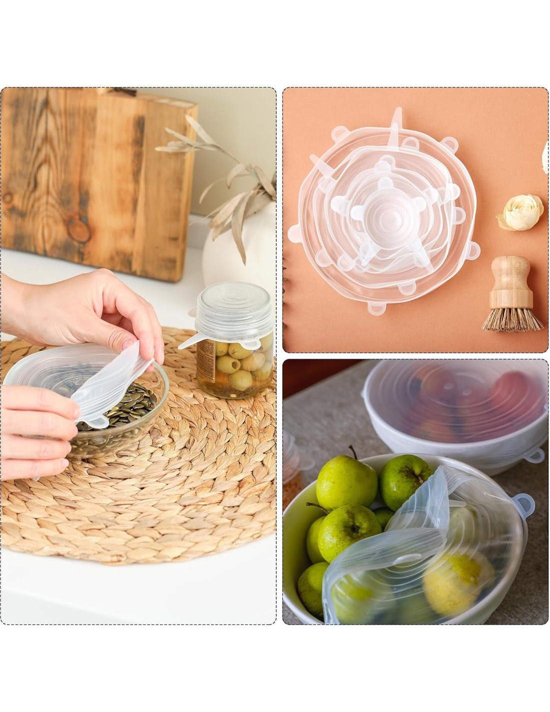 - [Amplias Aplicaciones] - Las tapas de silicona stretch son buenas para cubrir la mayoría de los alimentos, como sobras, sopa, platos, frutas, verduras, bebidas, se adaptan a la mayoría de los recipientes diferentes, como cuencos, ollas, cristalería, recipientes, tazas, latas, frascos, alimentos enlatados, etc., aptas para interiores y exteriores. Buenas para almacenar alimentos y ahorrar espacio en el refrigerador.