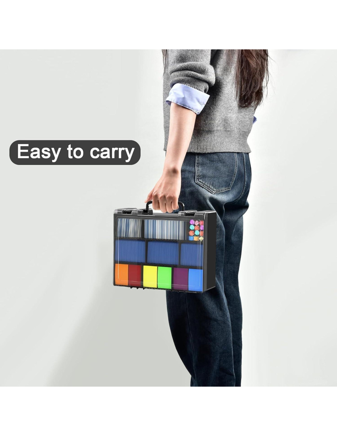 - Almacenamiento de juegos de cartas fácil de llevar: Los soportes para cartas de juego tienen un mango fuerte, puedes colgar la caja de tarjetas deportivas en la pared o llevar las cajas de cartas para deportes afuera para compartir el disfrute de jugar a las cartas en cualquier momento. Y la caja de almacenamiento de cartas coleccionables con dos pestillos te permite abrir o cerrar la caja de transporte de cartas fácilmente