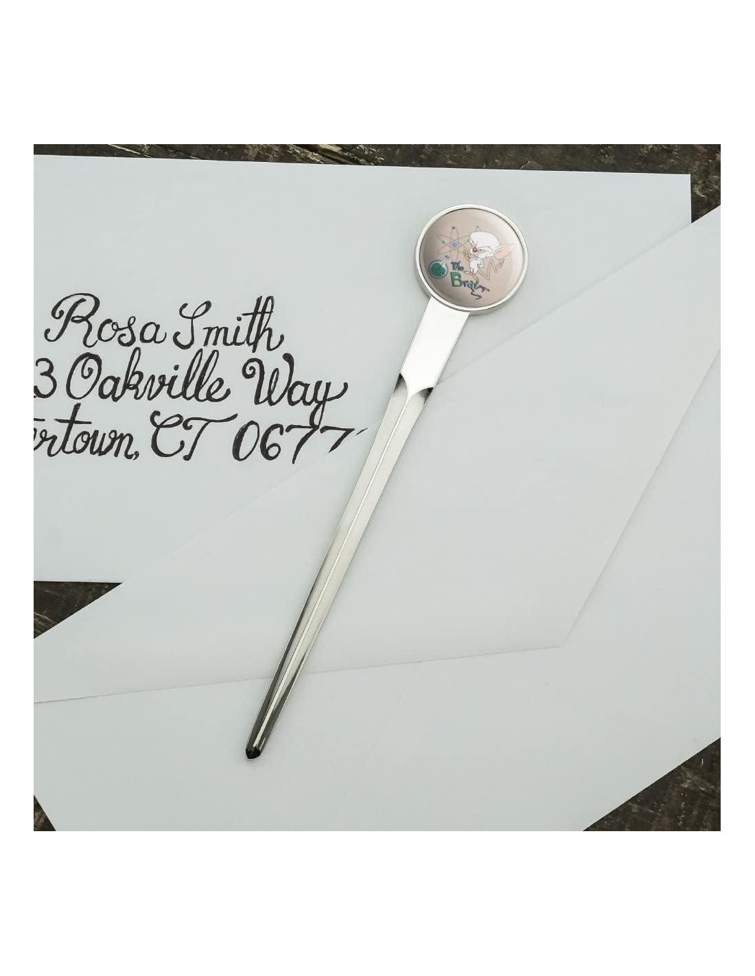 Acerca del Producto: Este abre cartas es la perfecta armonía de función y diversión. El diseño de metal resistente hace que abrir el correo sea muy fácil, mientras que la imagen cubierta de resina añade un toque personal. El abre cartas mide 6.8" (17.3cm) de largo, y el diseño circular tiene un diámetro de 1.0" (2.5cm). Acerca del Diseño: Pinky y el Cerebro es una serie de televisión animada estadounidense creada por Tom Ruegger que se estrenó en Kids' WB el 9 de septiembre de 1995. Pinky y el Cerebro son ratones de laboratorio genéticamente mejorados que residen en una jaula en la instalación de investigación de Acme Labs. Cerebro es altamente inteligente, egocéntrico y maquinador, mientras que Pinky es de buen corazón pero de mente débil. En cada episodio, Cerebro elabora un nuevo plan para conquistar el mundo que termina en fracaso. Si eres fan, ¡te encantará este producto oficial de Pinky y el Cerebro!