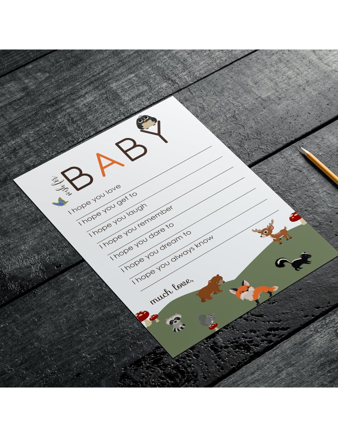 - Encantador Tema de Bosque: Estas encantadoras tarjetas presentan diseños de animales adorables, perfectas para baby showers neutrales, lo que las convierte en una divertida adición a cualquier celebración.