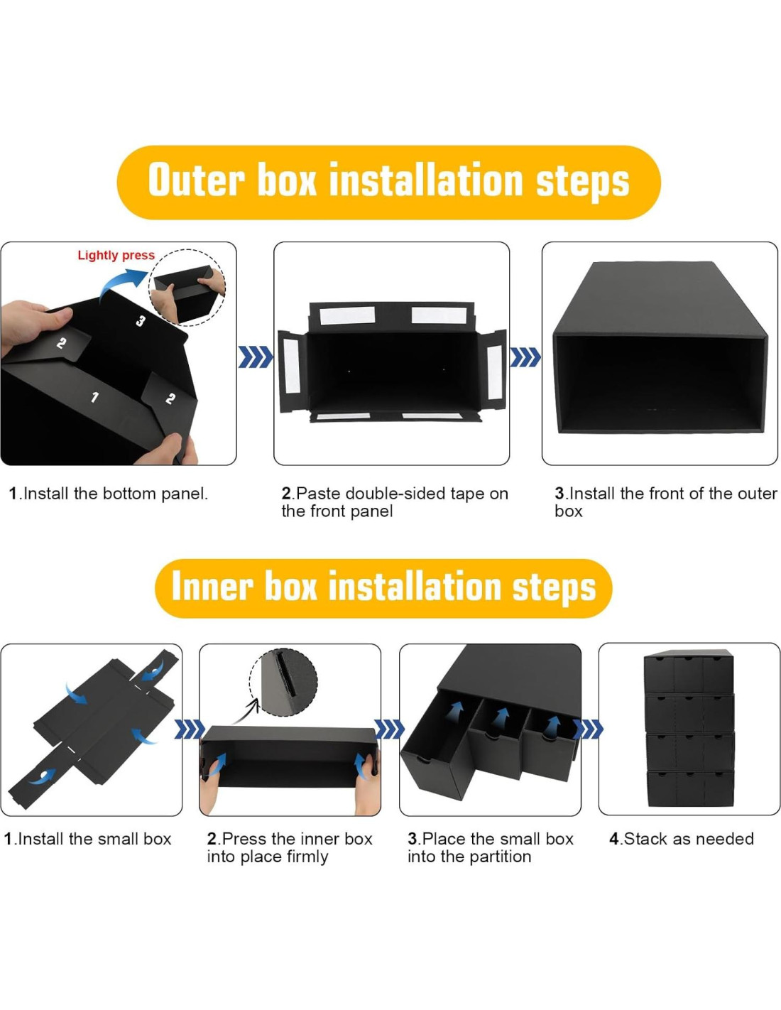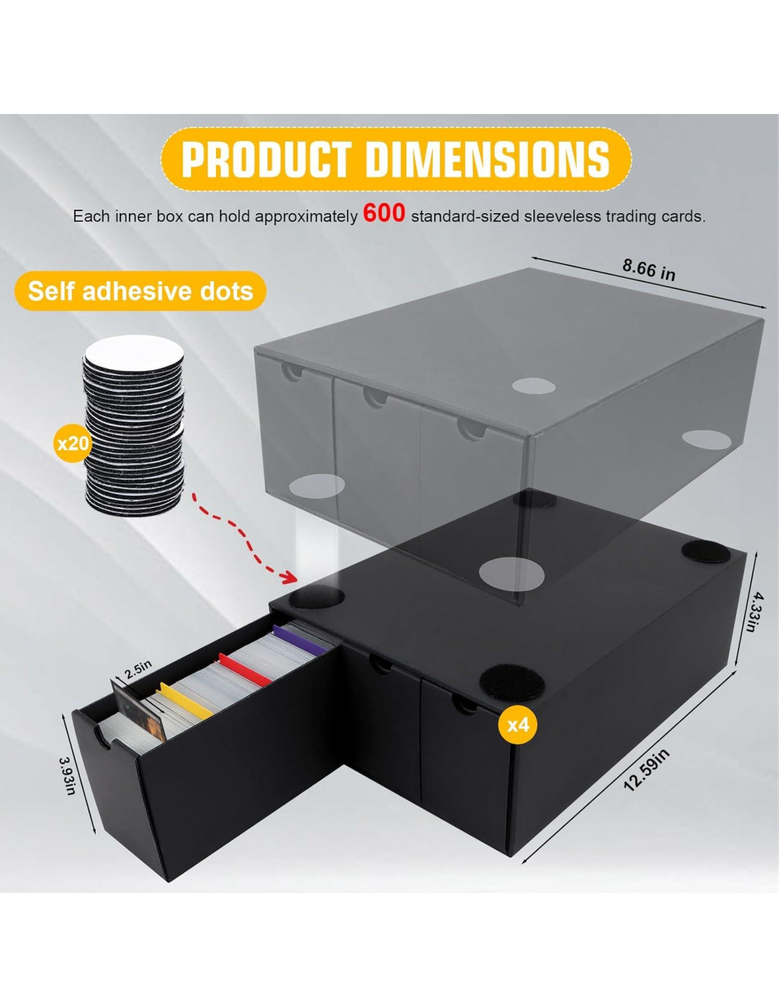 - La caja de almacenamiento de cartas coleccionables está hecha de cartón corrugado grueso, asegurando robustez y durabilidad. La caja presenta un recubrimiento negro total sin ángulos muertos, dándole una apariencia elegante y atractiva sin verse barata. Mantén tus cartas coleccionables bien organizadas y protegidas del polvo y daños.