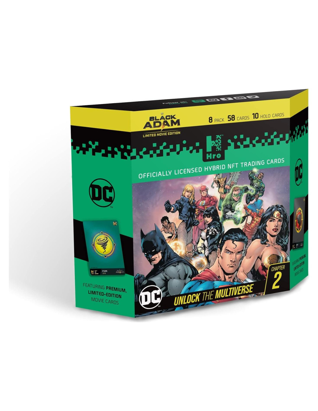 Nuestra colección híbrida de tarjetas de comercio físicas llenas de acción (completas con gemelos digitales NFT) ha regresado! Ahora, puedes coleccionar un nuevo conjunto de arte icónico de la historia de los cómics de DC que presenta favoritos de los fans como Batman, Superman, Wonder Woman, y muchos más. Además de viajar a través de múltiples eras que abarcan el pasado y el presente, también celebraremos cómo la jerarquía del poder está cambiando en el Multiverso de DC gracias al estreno de "Black Adam" en cines de todo el mundo el 21 de octubre de 2022. No te pierdas esta emocionante expansión de nuestra línea híbrida única (si lo haces, podría ser tu historia de origen como villano). Toda la actividad en la plataforma HRO está heroicamente respaldada por la tecnología Blockchain que ofrece Prueba de Autenticidad y Propiedad sobre cada activo para que puedas comerciar con confianza sin importar cuánta experiencia tengas. Busca las tarjetas más raras, asciende a la cima de las tablas de clasificación globales y desbloquea la oportunidad de ganar recompensas especiales que darán vida al Multiverso. Negocia con compradores, vendedores y otros comerciantes para curar tu alineación soñada de tarjetas. Tu voz, intereses, conocimiento y pasión siempre son lo primero en el universo HRO, ilustrando la conexión atemporal fomentada por la inolvidable narración de DC.