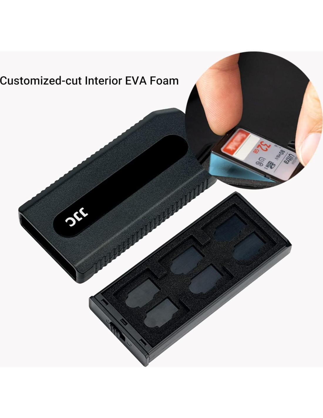 - Interior de Espuma EVA Cortada a Medida: El forro de espuma suave no solo permite una fácil instalación y extracción de la tarjeta de memoria, sino que también protege la tarjeta de memoria de daños. Hecho de material plástico ABS ecológico de alto impacto, resistente y duradero.