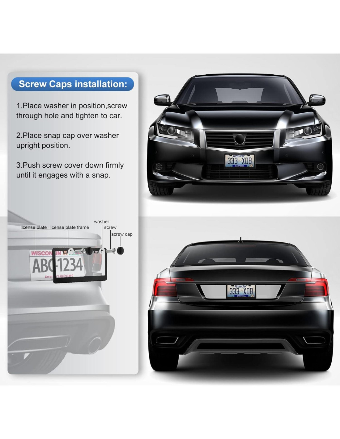 - FÁCIL DE INSTALAR: El paquete de valor incluye 2 piezas de marcos de placas de licencia, accesorios, tapas de tornillo, tornillos antirrobo y destornilladores a juego.