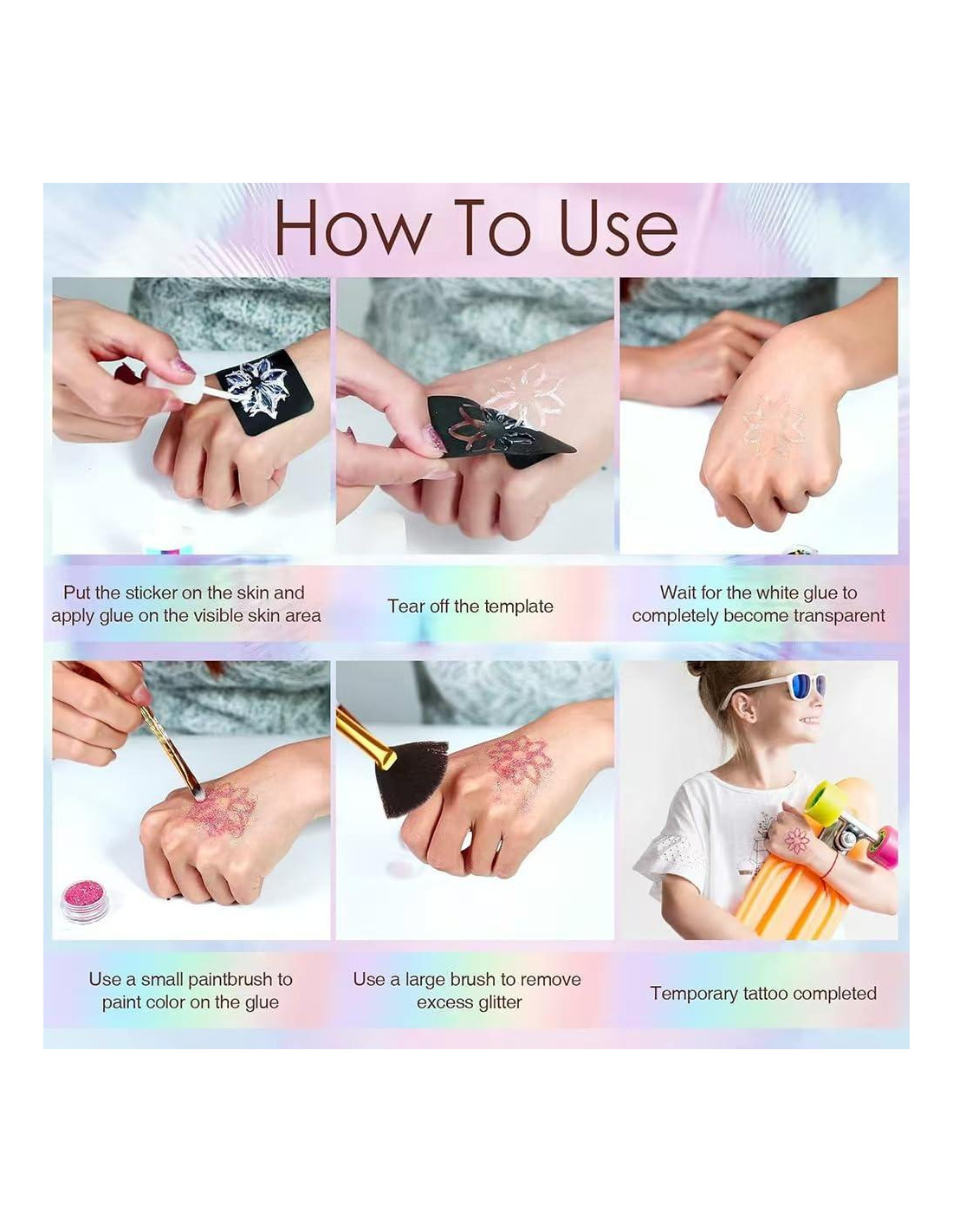 - ¡El regalo perfecto para todas las edades! El set de tatuajes de brillo bellamente empaquetado es un gran regalo para los niños. Este set de tatuajes es perfecto para Navidad, Año Nuevo, fiestas de cumpleaños, carnaval, día de los niños, Halloween, fiestas en la piscina y juegos de rol. Puede mantener a los niños entretenidos durante horas y alejarlos de las pantallas electrónicas para proteger su vista. Pasar un gran momento creando con amigos y familiares.