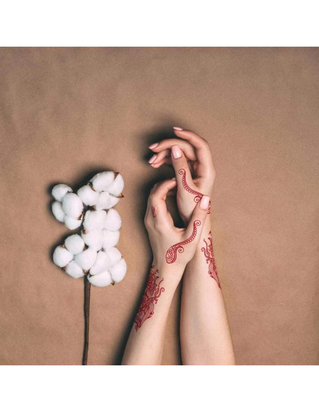 - PAQUETE INCLUIDO: 6 Hojas Rojas + 6 Hojas Negras Plantillas de tatuaje de henna. Plantillas de henna autoadhesivas con varios patrones.