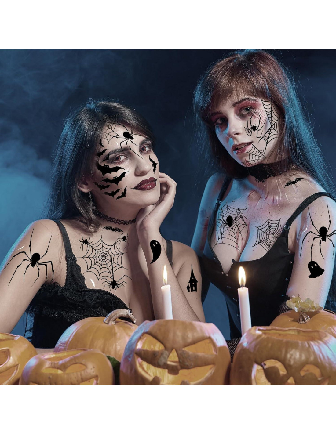 - [FÁCIL DE USAR] - Coloca los tatuajes de Halloween y humedécelos, en menos de 30 segundos con tatuajes de larga duración. Estos tatuajes temporales de telaraña de Halloween son fácilmente removibles con aceite para bebés.