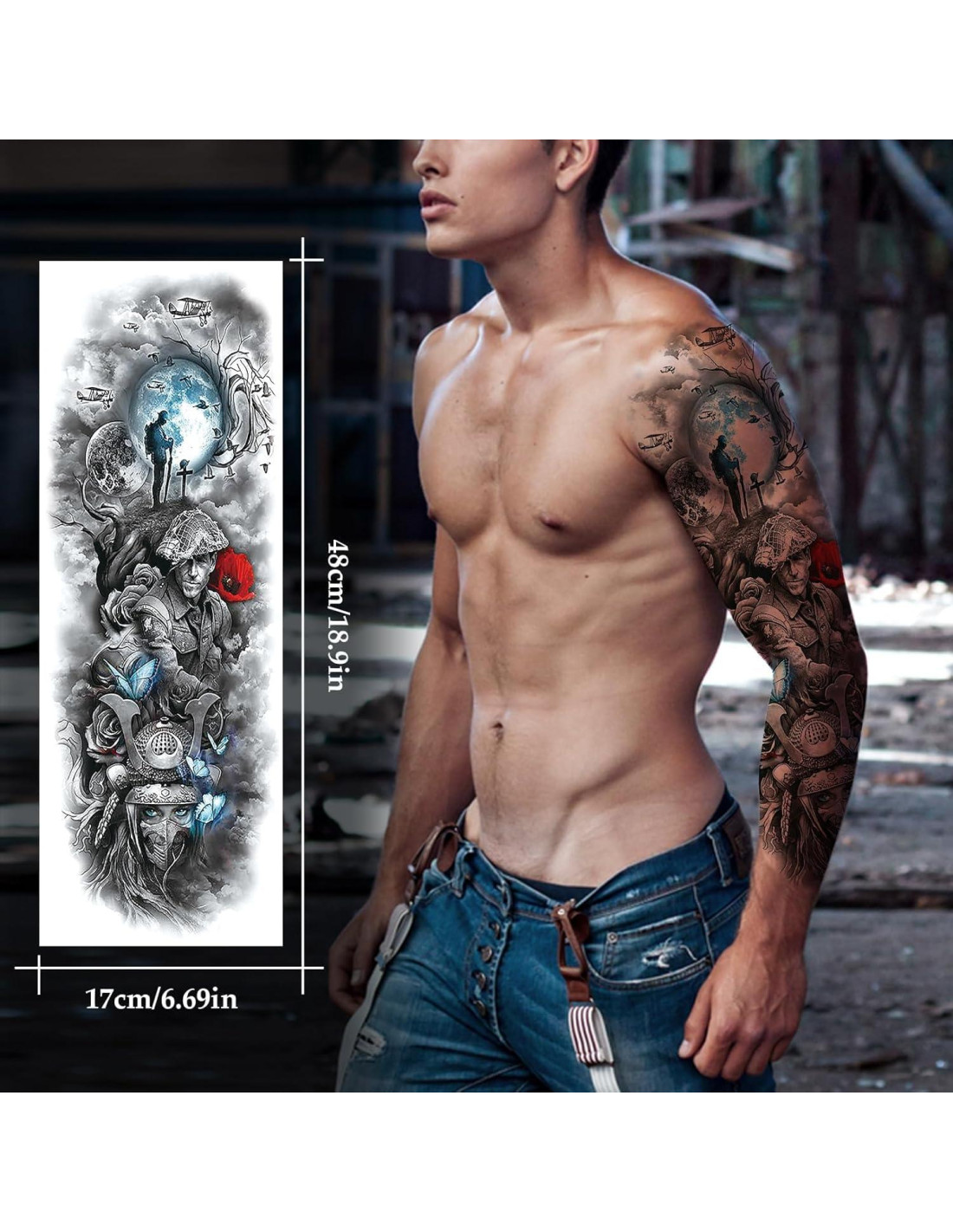 - Gran Colección para Cobertura de Manga Completa: Este conjunto incluye 12 hojas de tatuajes temporales grandes, diseñados especialmente para cubrir brazos completos, mangas u otras áreas grandes del cuerpo. Perfecto para crear un look audaz y llamativo en festivales, fiestas o eventos de cosplay, estos tatuajes son imprescindibles para hombres, niños y adolescentes que aman el arte corporal