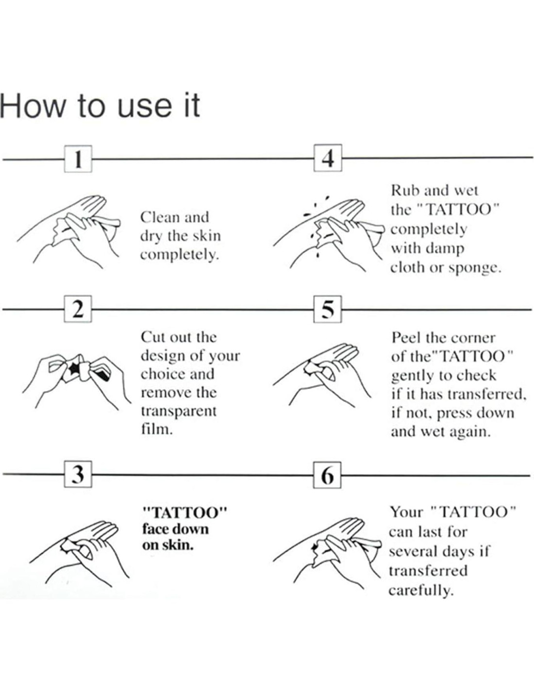 - [RÁPIDO Y FÁCIL DE APLICAR] Quita la película clara y transfiere con agua sobre la piel en 10-20 segundos. Es fácil de quitar y lavar con aceite para bebé o alcohol. Tatuajes falsos realistas para la cara de mujeres adultas en el antebrazo. [¡Atención!] El papel de tatuaje temporal no debe mojarse con agua de antemano, debe mojarse en el cuerpo, de lo contrario, la pegatina no se mantendrá en el cuerpo por mucho tiempo.