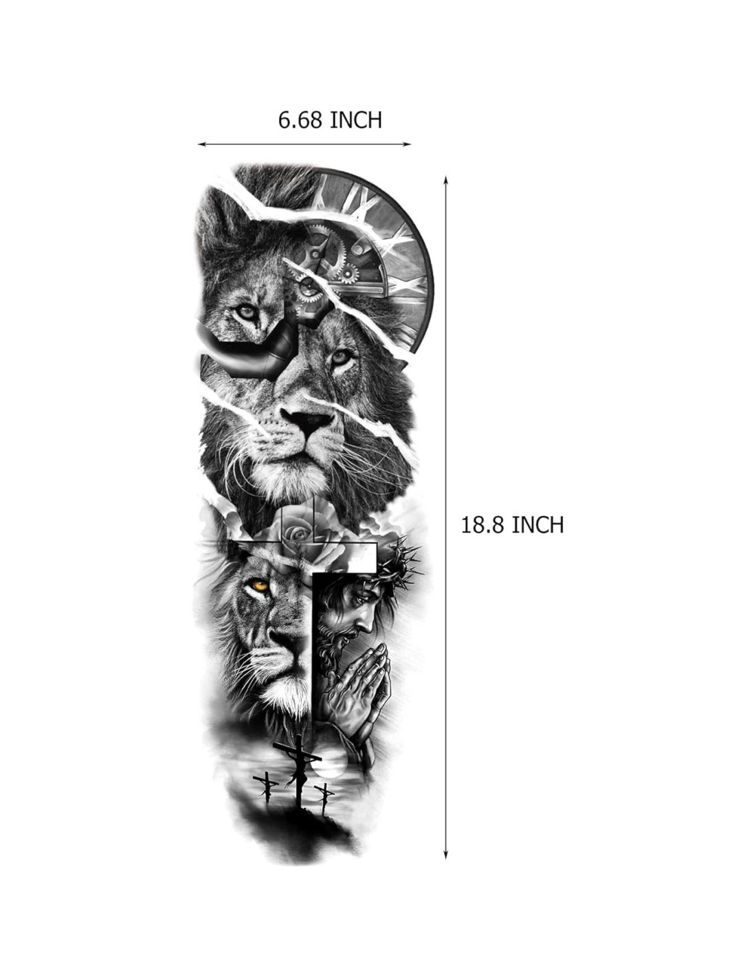 - Diseños de Animales Poderosos::-- Este paquete incluye 6 tatuajes temporales únicos de brazo completo que presentan feroces leones y lobos, junto con elementos de reloj intrincados, perfectos para hacer una declaración audaz en eventos de cosplay o festivales.