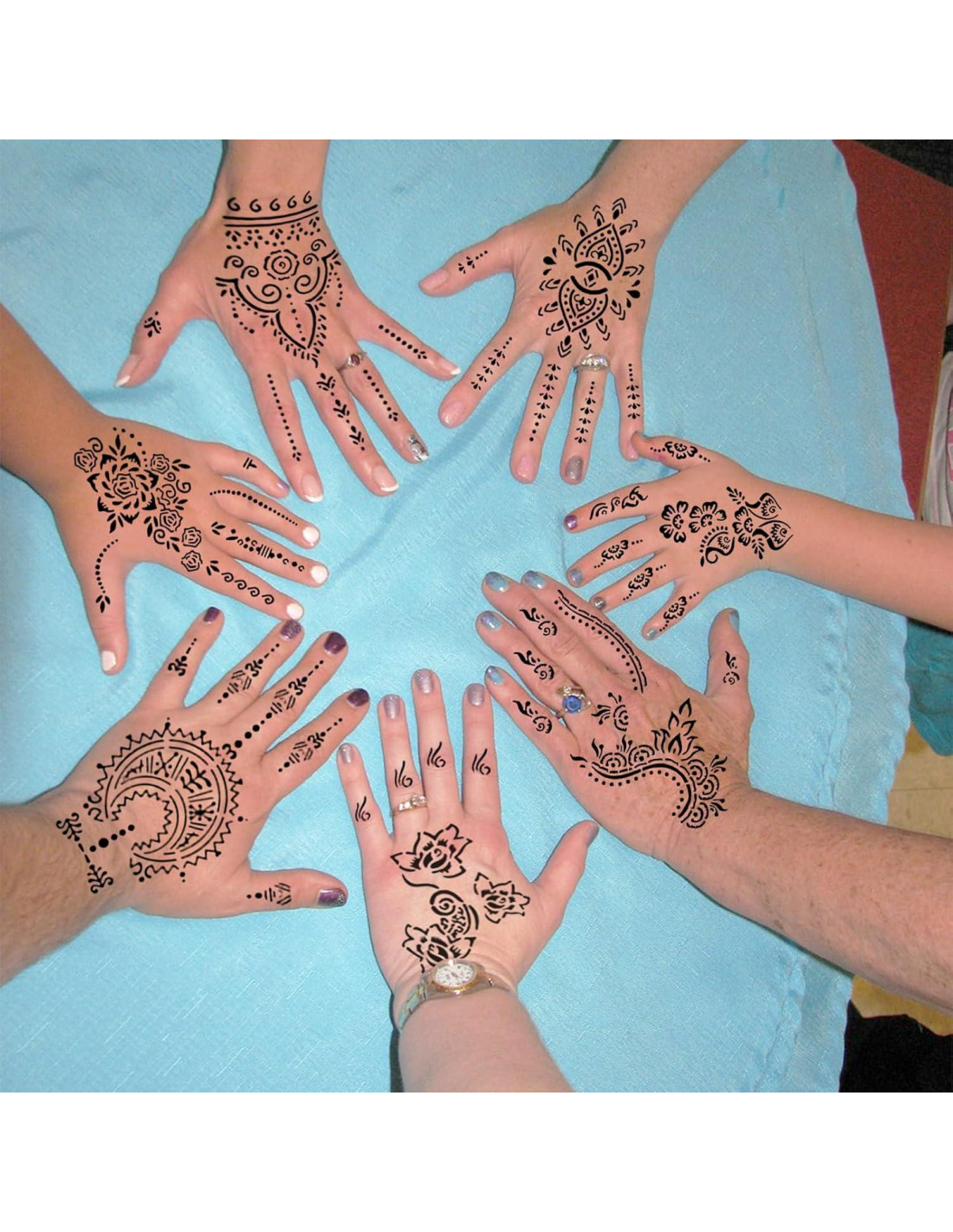 - [ REGALOS FANTÁSTICOS ] - Nuestros paquetes de plantillas de tatuajes de henna han sido cuidadosamente seleccionados sin contenido poco saludable. Perfecto para niños y adultos. Perfecto para cualquier evento como bodas, fiestas de cumpleaños, festivales, etc. Seguro y divertido para todas las edades, se puede usar en cualquier parte del cuerpo.