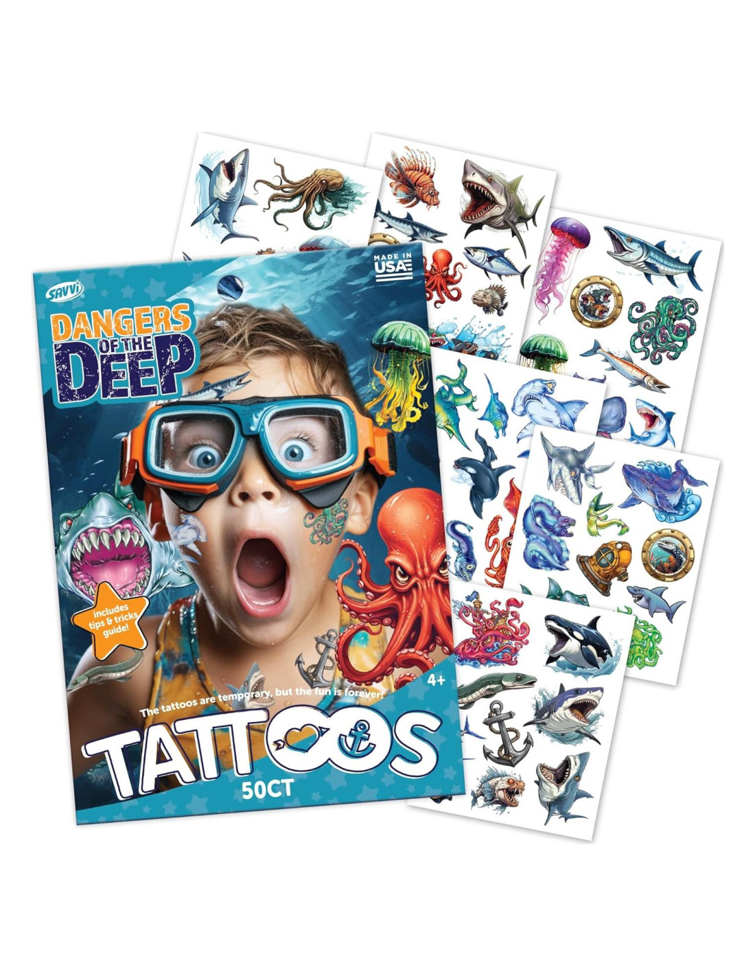 - VIVE UNA AVENTURA BAJO EL AGUA: Sumérgete en un océano de diversión con nuestro Paquete de Tatuajes de Criaturas Marinas de 50 Piezas - el tesoro definitivo para niños y jóvenes de corazón.