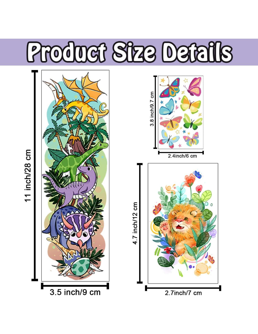- [Sorpresa Popular para Fiestas Infantiles] Ya sea una fiesta de vacaciones o una fiesta de cumpleaños, ya sea el dinosaurio, camión, pirata favorito de un niño, o la princesa, mariposa, sirena favorita de una niña, mientras busques una sorpresa que a los niños les encante, nuestro conjunto de stickers de tatuajes temporales de tamaño mixto definitivamente satisface todas tus necesidades.