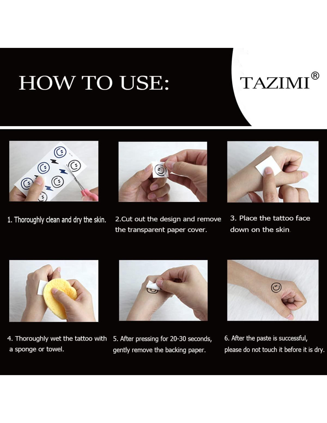 - [Fácil de aplicar] ¿Temor al dolor? ¡no te preocupes más! nuestros stickers de tatuajes son fáciles de usar. primero, limpia tu piel, luego coloca el patrón cara abajo sobre la piel y cubre con una esponja húmeda durante 20-30 segundos, y descubre el papel de atrás, ¡obtendrás un tatuaje perfecto! y se puede quitar fácilmente con alcohol o aceite para bebés, tomará de 1 a 2 minutos para que el tatuaje se derrita completamente antes de limpiarlo suavemente para evitar rozaduras en la piel.