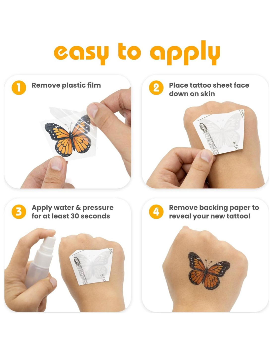 - TINTA SEGURA PARA LA PIEL: Usamos tinta segura para la piel, de grado cosmético y conforme a la FDA, por lo que estos tatuajes son tan seguros como divertidos, y son geniales para todas las edades.