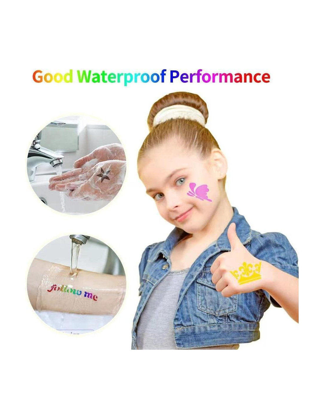 - [Mejor Regalo de Vacaciones para Niños] El set de tatuajes de brillo bellamente empaquetado es un gran regalo para los niños. Este set de tatuajes es perfecto para Navidad, Año Nuevo, fiestas de cumpleaños, carnaval, día del niño, Halloween, fiestas en la piscina y juegos de rol. Puede mantener a los niños entretenidos durante horas y alejarlos de las pantallas electrónicas para proteger su vista. Pasar un gran momento creando con amigos y familiares.