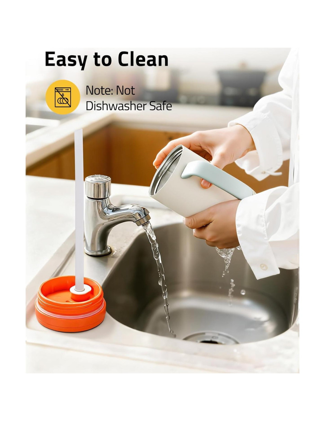 - Fácil de Limpiar: El vaso de viaje a prueba de fugas solo se puede lavar a mano. La pared interior del vaso aislado con tapa y popote está hecha de acero inoxidable 304 libre de BPA, la boca del vaso es grande y cada parte es fácil de limpiar