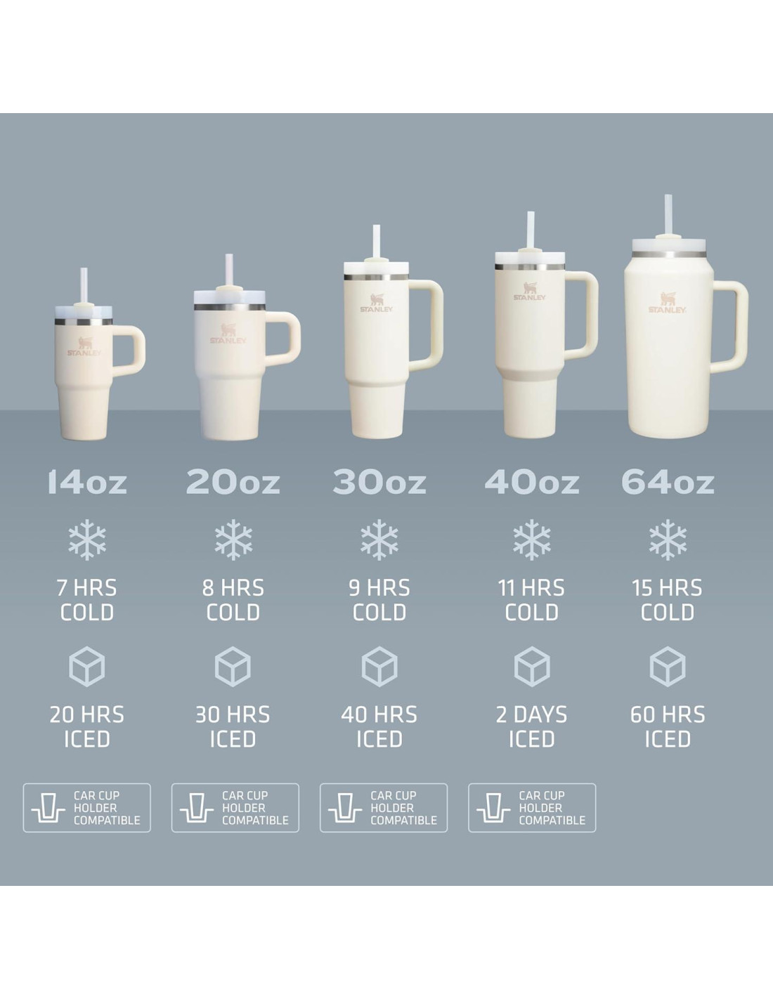- DURABILIDAD AMIGABLE CON LA TIERRA: Construida con un 90% de acero inoxidable reciclado libre de BPA para un sorbo sostenible, la Stanley Quencher H2.0 tiene la durabilidad para soportar toda una vida de uso. Elimina el uso de botellas y popotes de plástico de un solo uso con una taza de viaje diseñada con la sostenibilidad en mente.