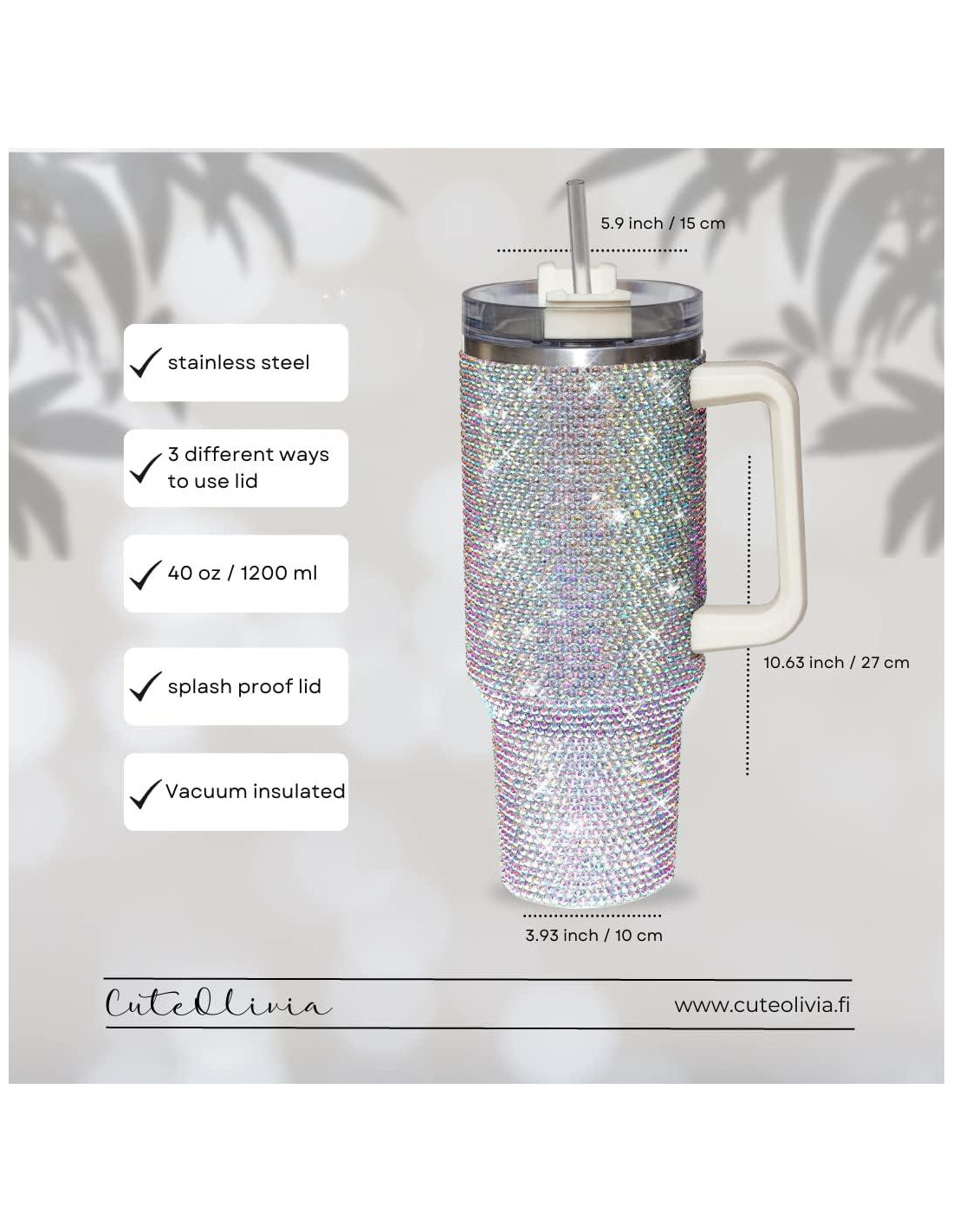 - EL CONJUNTO INCLUYE: Este conjunto incluye una taza de 40oz con tapa y popote, además de strass adicionales. El diseño lujoso y resistente hace que esta taza con asa sea perfecta para el uso diario. Su aspecto llamativo la convierte en una pieza destacada para cualquier ocasión.