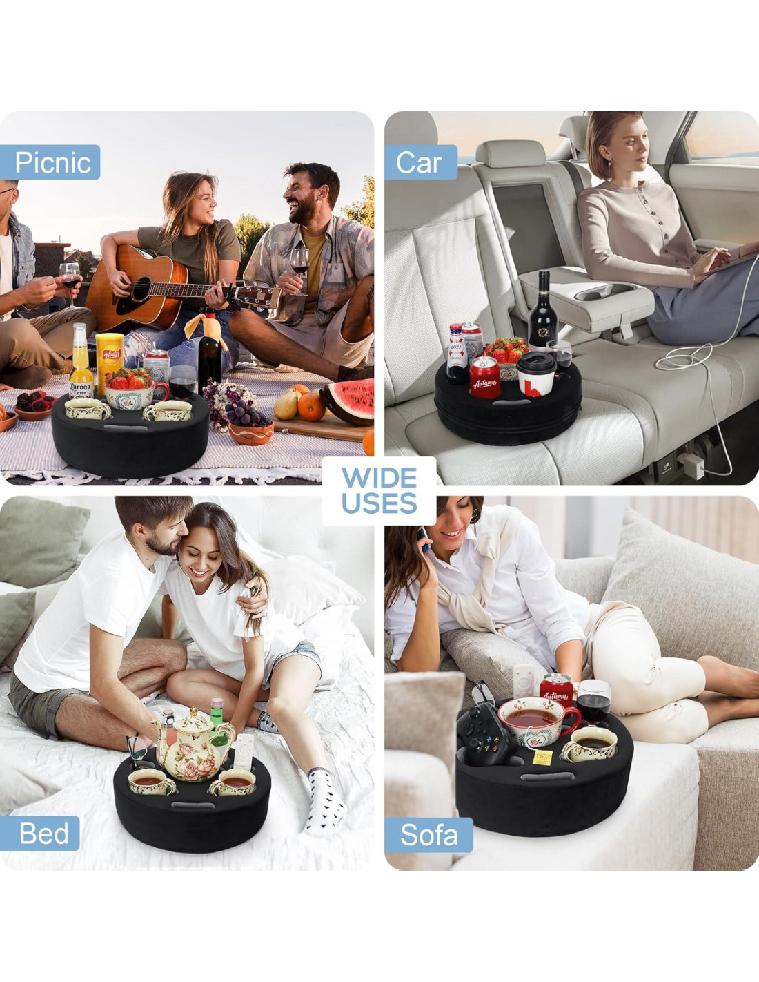 - NO MÁS DERRAMES: El cojín acogedor para tazas y vasos con piezas de plástico resistentes incorporadas está diseñado para prevenir inclinaciones, puede mantener tu vino y cerveza estables. Con nuestra bandeja de cojín para tazas, no más derrames o caídas en el sofá y la alfombra.