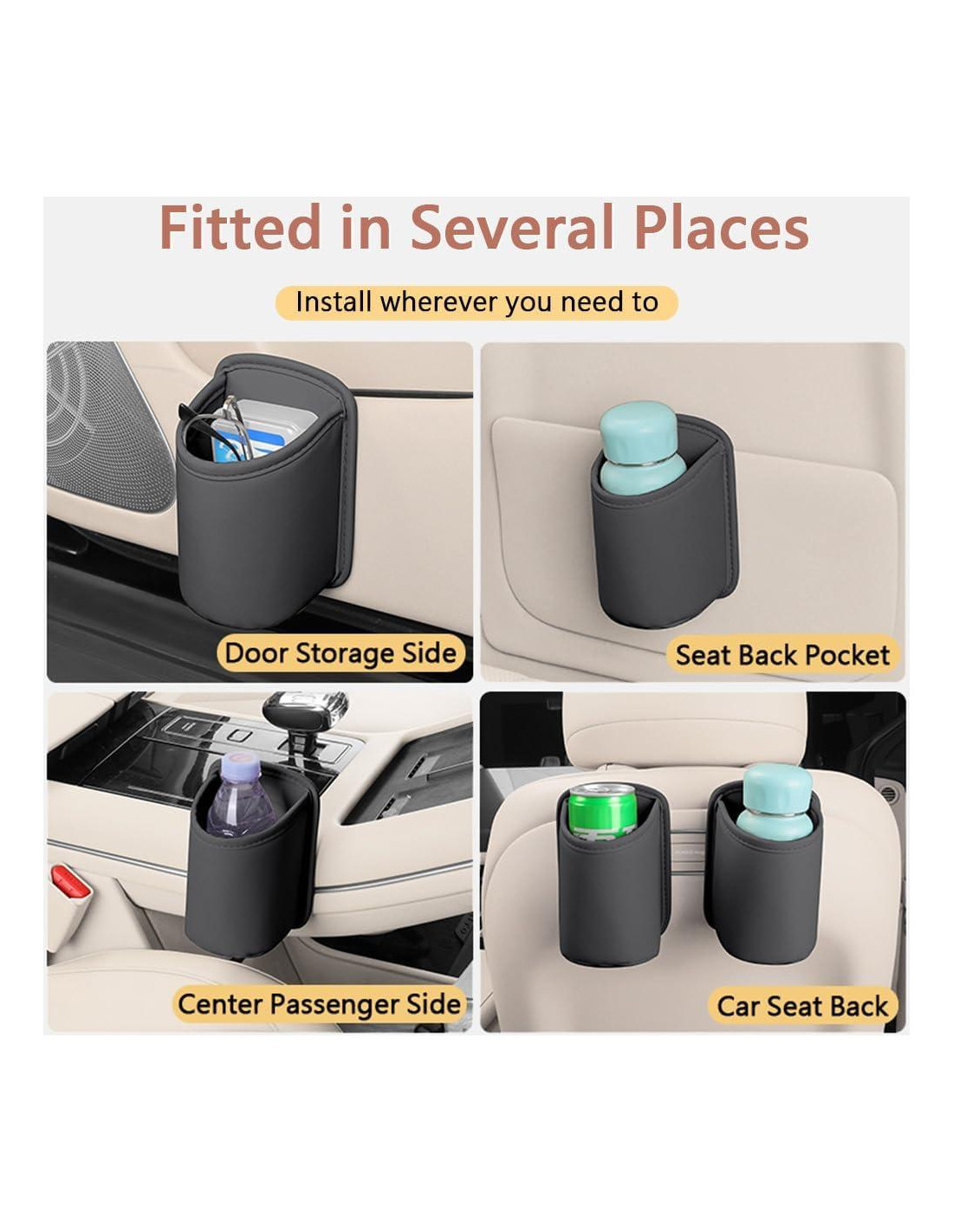 - Set de Valor de 2 Piezas: Incluye dos elegantes soportes para taza de puerta de auto negros para puertas delanteras y traseras; la construcción de cuero resiste derrames y se limpia fácilmente para un mantenimiento sin complicaciones