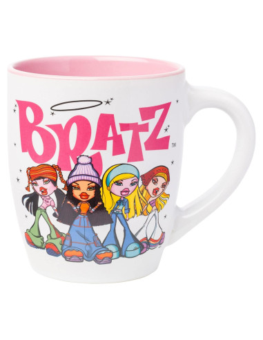 - Taza de café sobredimensionada: Disfruta de una buena taza de café o té en esta divertida taza de cerámica Jumbo de 25oz de Bratz. Presenta a tus personajes favoritos de Bratz bajo un logo rosa de Bratz sobre un fondo blanco. El interior de esta taza es rosa fuerte