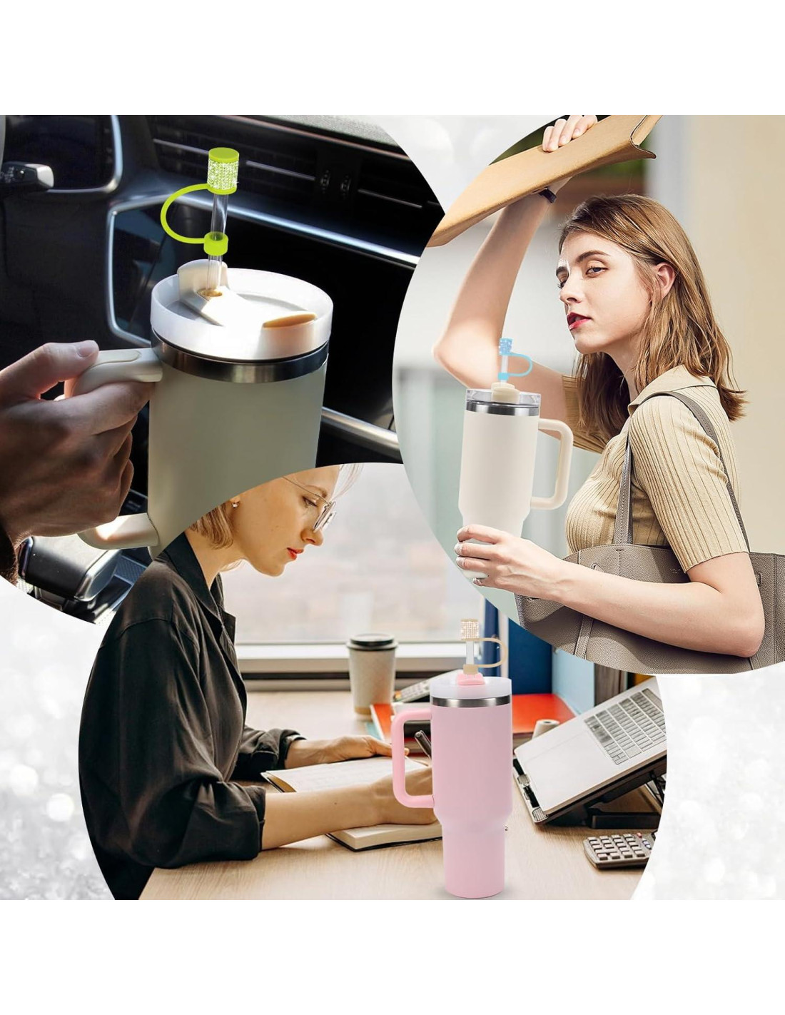 - Encanto de moda: Nuestras cubiertas de paja con destello de diamante vienen en una variedad de colores y pueden servir como piezas decorativas funcionales, añadiendo un toque de estilo a tu taza Stanley.