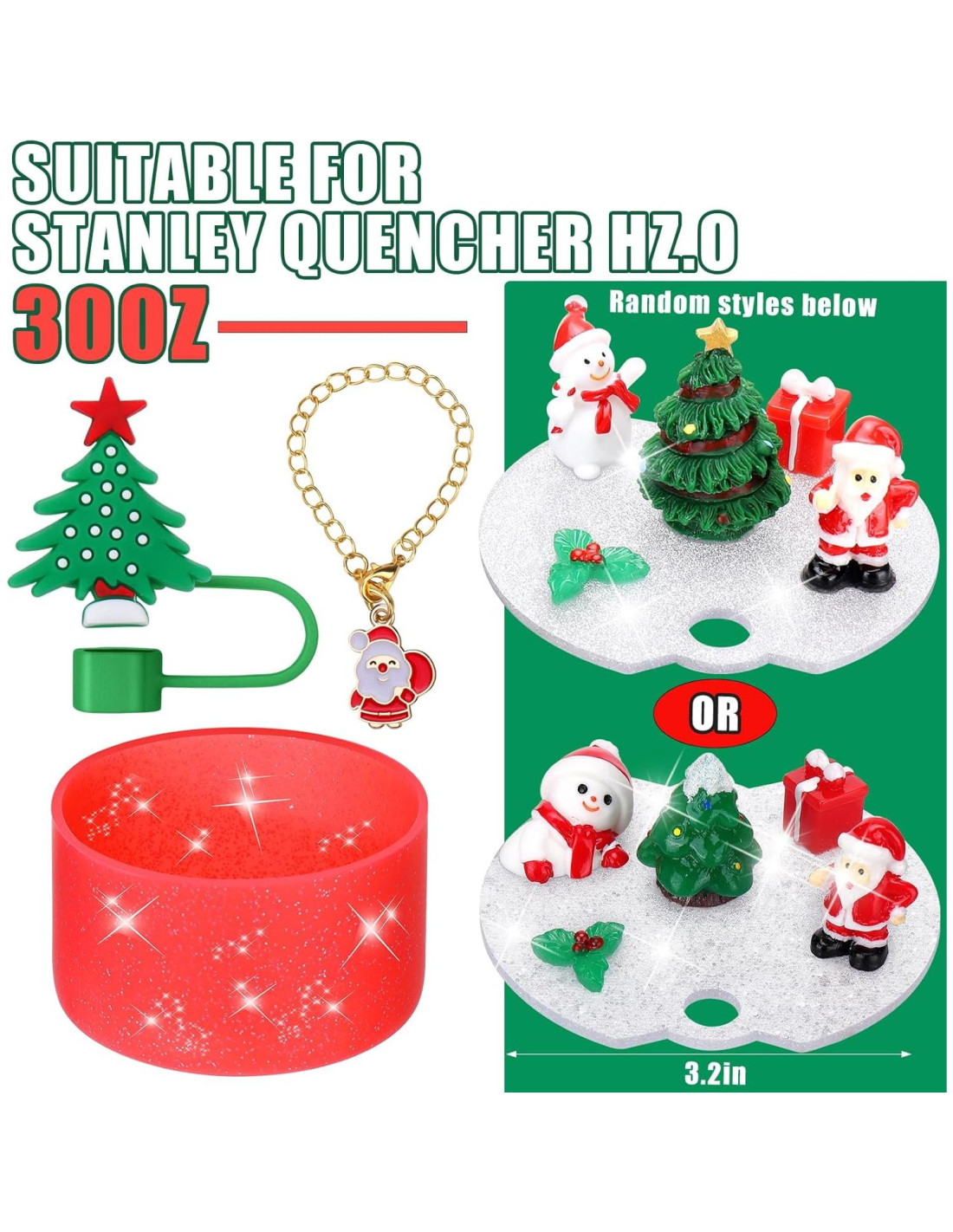 - Versatilidad: Ya sea que desees proteger tu vaso o simplemente quieras embellecer tu vajilla diaria, este conjunto proporciona todas las herramientas que necesitas para convertir un vaso ordinario en una obra de arte. Estos incluyen fundas brillantes para vasos, lindas cubiertas de sorbete en forma de árbol de Navidad y encantos de plato de sorbete con paisajes navideños.