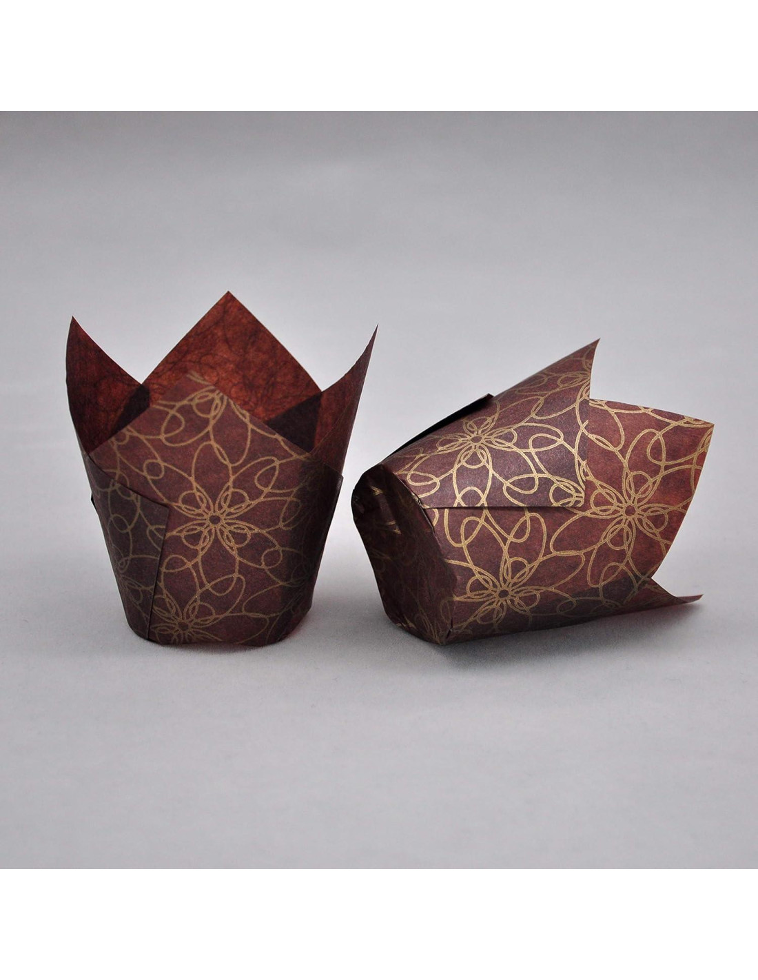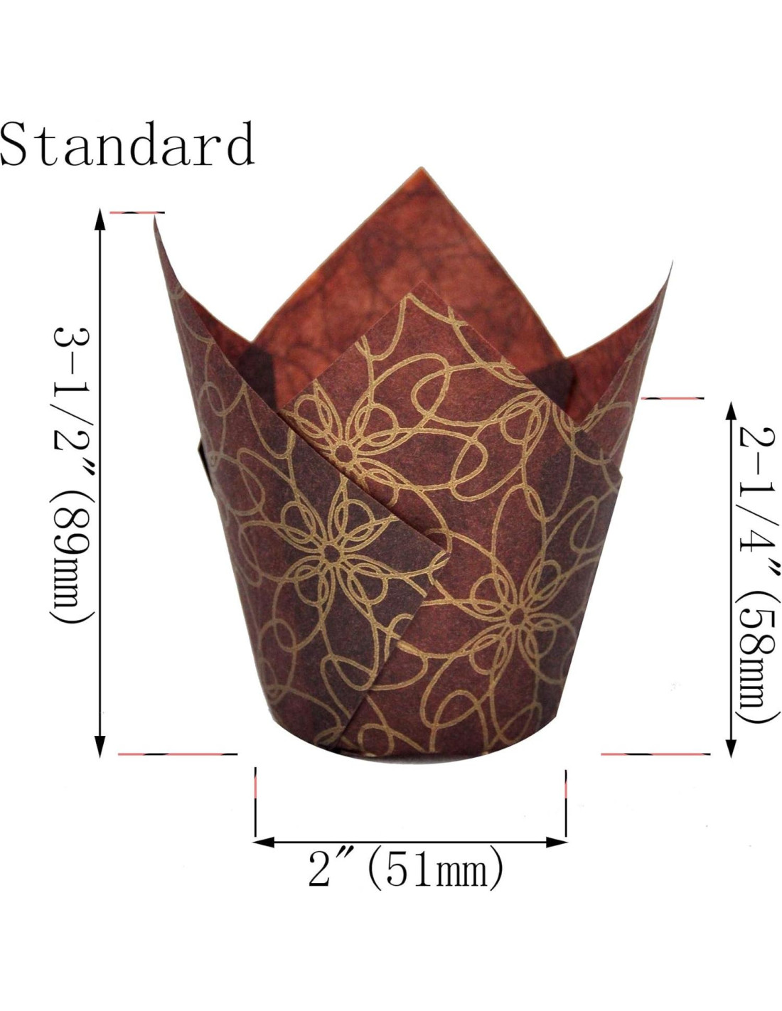 - TAMAÑO APROPIADO: Con un diámetro de base de 2 pulgadas (5.08 cm), nuestra taza de hornear tulipán es perfecta para un plato de muffin o pastel estándar. Tiene aproximadamente 2.25 a 3.5 pulgadas (5.72 a 8.89 cm) de altura y una capacidad de aproximadamente 3-4 onzas (85-113.4 g).