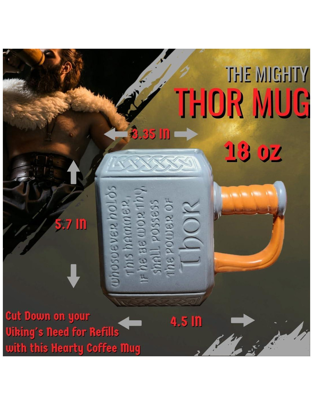 - Taza de Diseño Nórdico Creativo: Esta única taza de beber Martillo de Thor tiene el infame encantamiento grabado en el costado, mientras presume más diseños místicos asgardianos alrededor del resto de la taza. Su diseño la hará el centro de atención en las fiestas, pero también es adecuada para llevar tu café de la mañana. Con su construcción equilibrada, esta taza mágica es tanto agradable a la vista como práctica de usar.