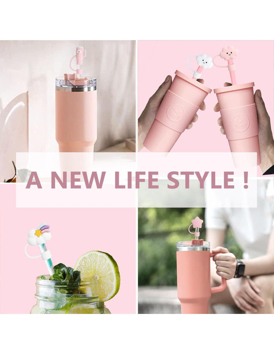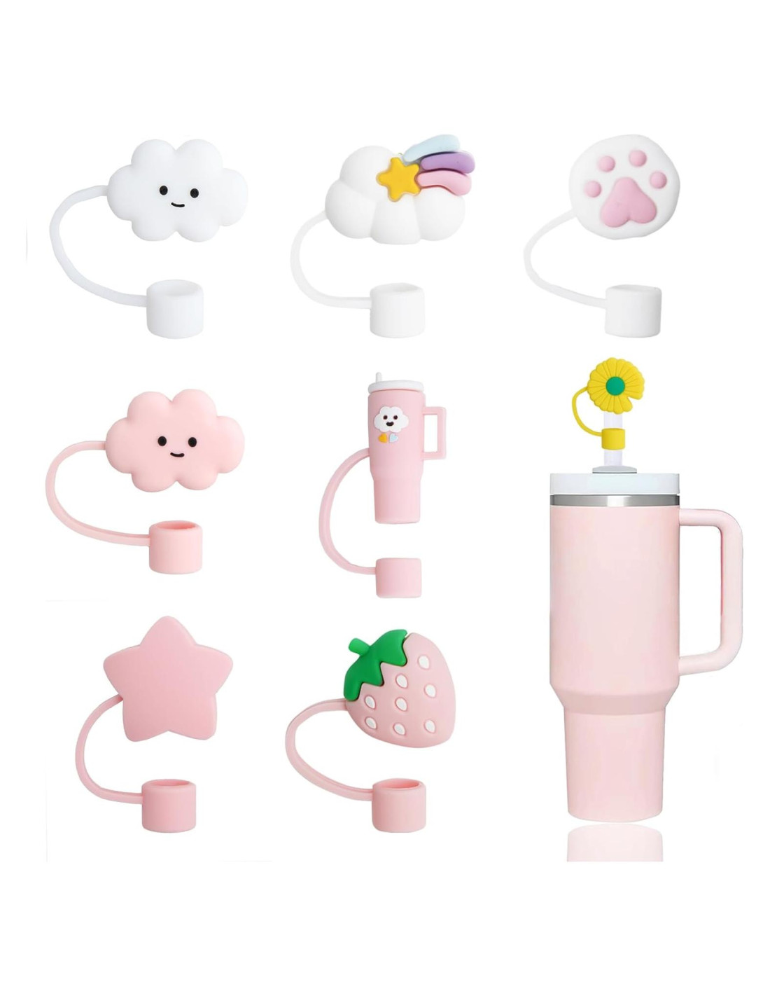 - Diseño hermoso y bien diseñado Incluye 8 pcs de cubiertas de pajitas stanley de diferentes formas (1 pequeña margarita, 1 nube blanca, 1 nube estrellada, 1 pata de gato linda, 1 nube rosa, 1 estrella rosa, 1 fresa rosa y 1 taza rosa). El diseño de diferentes colores y formas hace que tu taza se vea más linda y atractiva. Puedes usarlas para cambiar tu estado de ánimo cada día.