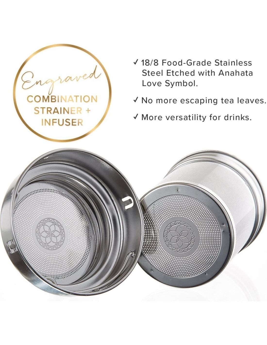 - Componentes incluidos: Colador, Canasta de Infusor, Funda de Viaje, Poema y Tarjeta de Regalo, Tapa a Prueba de Fugas